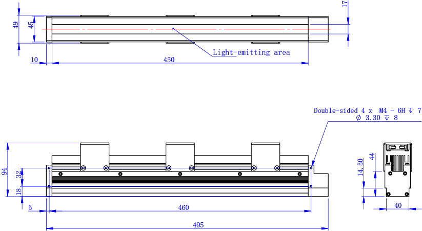 CK-2LPX-450 is a Line scan lights featuring low scattering and strong directionality, enabling precise control over the light irradiation area and angle. It supports multiple applications including coaxial lighting and backlighting, with a customizable light source length.