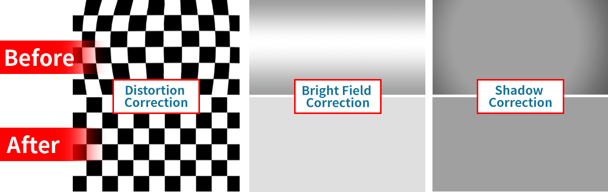 Built-in ISP algorithms include bright field correction, dark field correction, lens shadow correction, dead pixel/line correction, and per-pixel correction for uniform, stable images.