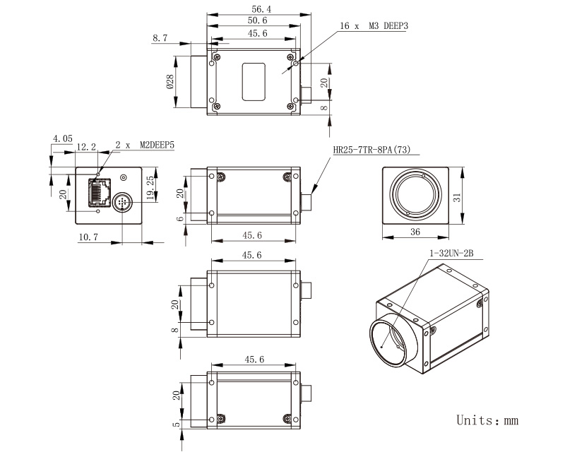 | Dimensions | 36(W) × 31(H) × 50.6(L) mm (without lens adapter or connectors) |