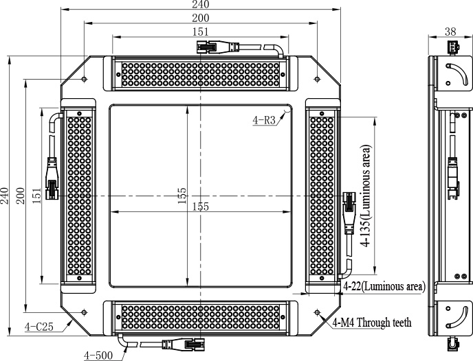 The four-sided lighting module enables independent adjustment of angle, brightness, and height. It features excellent uniformity and a large irradiation area, with an integrated angle-adjustable design that facilitates easy installation and operation.