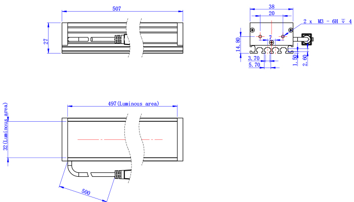 Illuminated Area Size 497mm*12mm 497mm*22mm 497mm*32mm